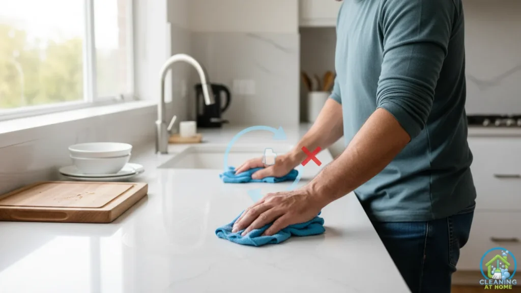 This usually starts with cleaning too early or without considering how the space will be used afterward. For example, wiping kitchen counters before cooking, sweeping floors before everyone is done moving through the room, or tidying a surface that will be used again within minutes. The task gets done, undone, and then done again later.