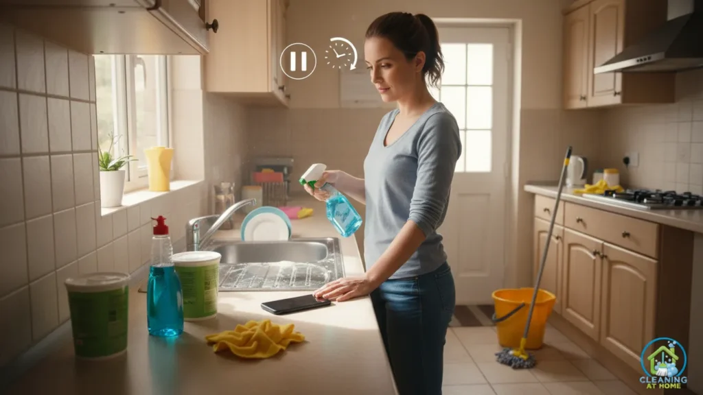 Interruptions are one of the biggest reasons cleaning takes longer than expected. Many people start a task with good intentions, get pulled away by something else, and assume they’ll pick up right where they left off. In reality, interrupted cleaning almost always leads to restarting rather than continuing.