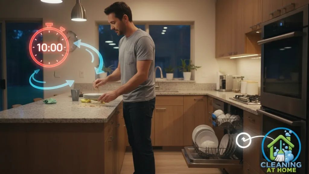Daily cleaning should happen inside a defined window, not scattered throughout the day. When small tasks are done randomly whenever mess appears, cleaning blends into everything else. There’s no clear start or finish, which makes it feel endless even if the total time spent isn’t that high.