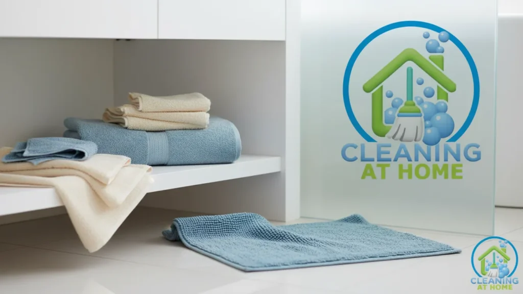 Start by removing all used towels and mats before or during your bathroom clean. Even if they don’t look dirty, they’ve been exposed to moisture and should be washed regularly. Leaving them in place while cleaning the bathroom often traps odors and makes the room feel less clean afterward.
